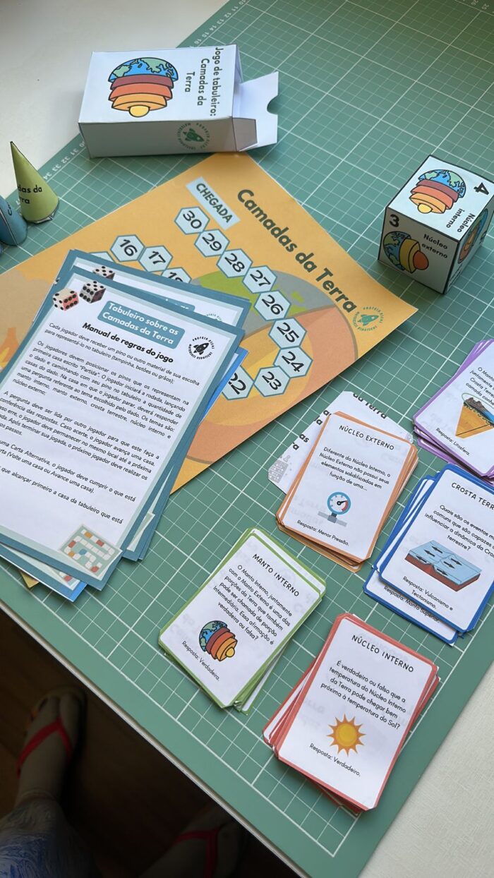 - O material em PDF com 42 páginas é um jogo sobre a temática de Camadas da Terra. O material é um jogo de tabuleiro sobre a temática que acompanha Cartinhas para serem respondidas pelos alunos, diferentes versões de tabuleiros para se caminhar à medida que acertam, manual de instruções, dado, peças para o tabuleiro e sugestão para execução do material, dentre outras características. O material foi desenvolvido seguindo as habilidades EF06CI11 e EF07CI15 e a sugestão de uso é o 6º ano do Ensino Fundamental.